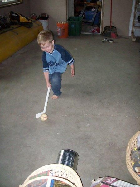 Lucas played a little hockey with a baseball and a can while I cleaned. Nice to have company.