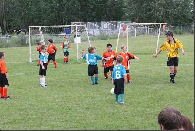 I did coach my soccer game last night and we won. They boys were excited as it was only our second win. Lucas kicking a penalty (hand ball).
